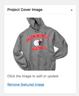 Go to the Product Cover Image, Click “Set Feature Image”: